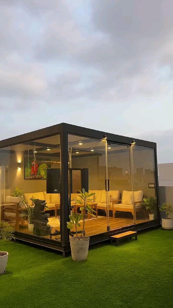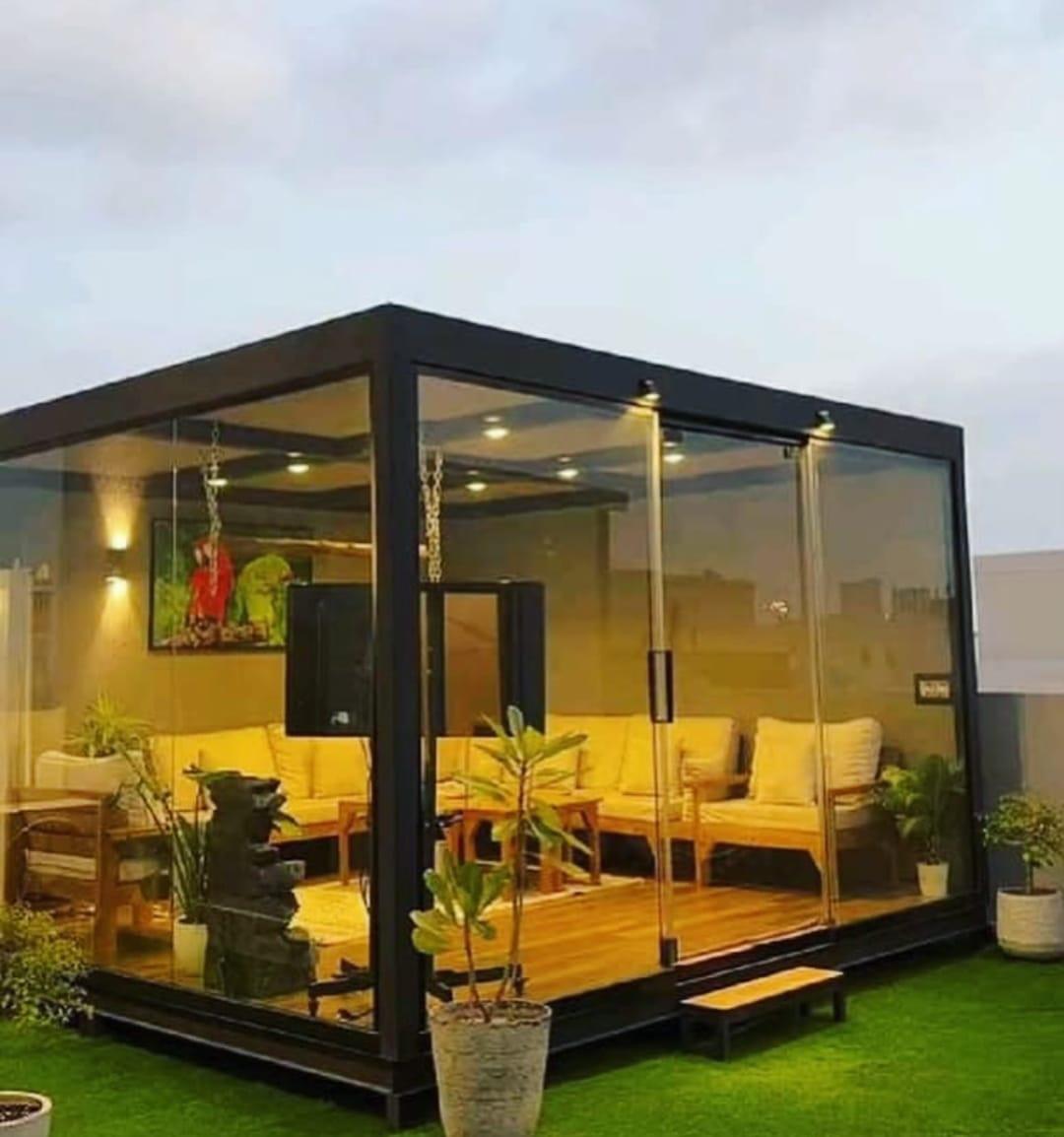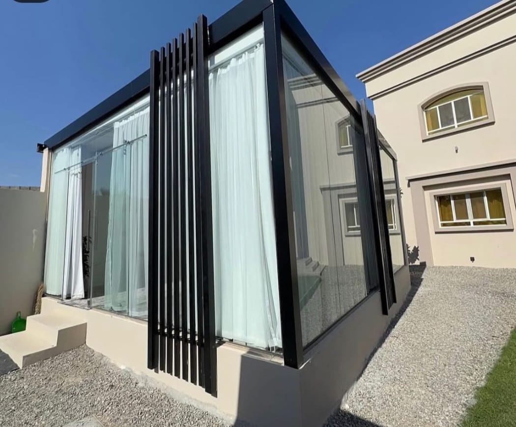 الغرف الزجاجية توفر مساحة أنيقة ومضيئة تجمع بين الداخل والخارج حيث تسمح بدخول الضوء الطبيعي وتمنح إطلالة جميلة مما يخلق بيئة مريحة وعصرية مناسبة للاسترخاء أو الاستخدام اليومي.